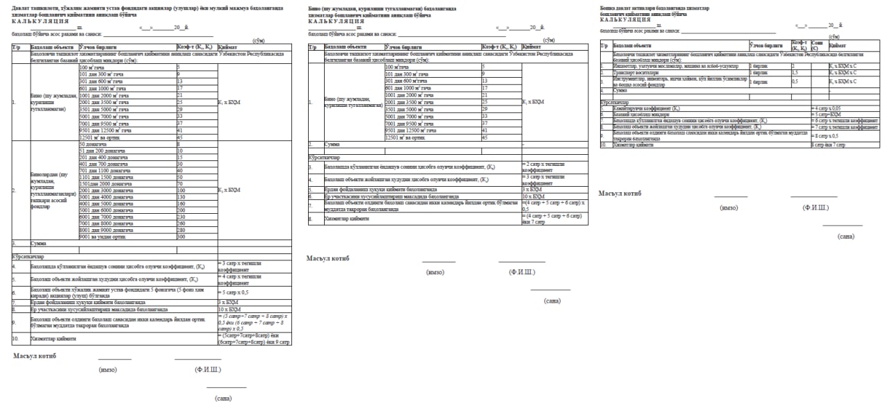 ➖БҲМ – баҳолаш санасидаги Ўзбекистон Республикасида белгиланган базавий ҳисоблаш миқдори;