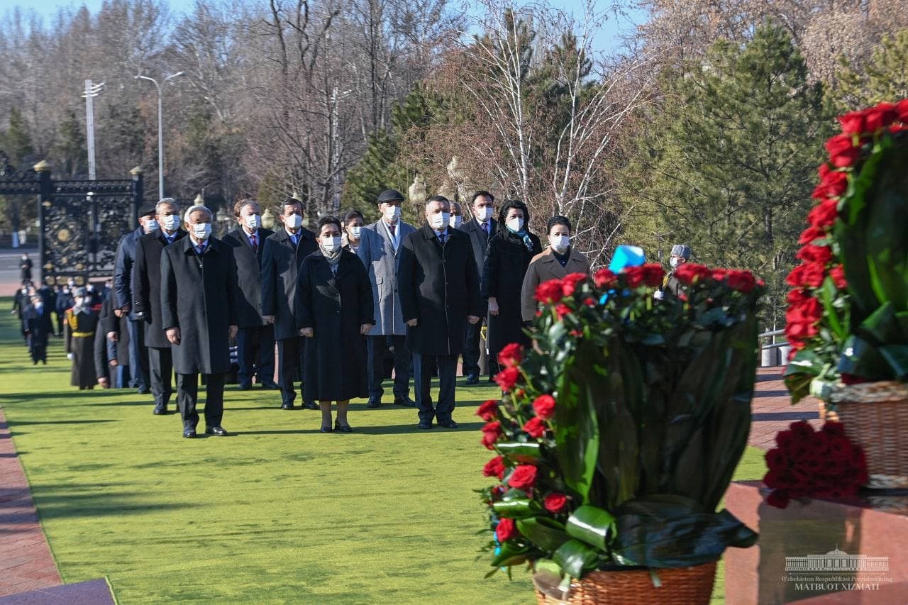 В церемонии возложения венков к подножию памятника Исламу Каримову, наряду с руководством парламента и правительства, приняли участие сенаторы, депутаты, сотрудники Администрации Президента и КабМина, деятели науки и культуры, и представители интеллигенции страны.