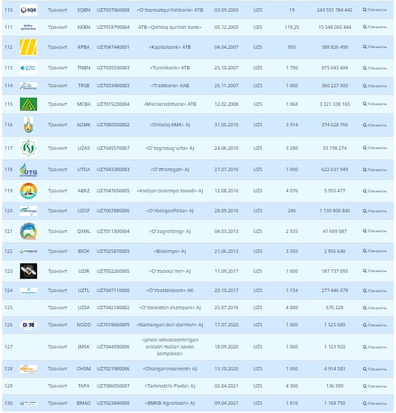 Напомним, что с 01.01.2022г. вступили в силу изменения и дополнения в Положение «О биржевом котировальном листе РФБ «Тошкент», согласно которым введена категория «Транзит» для акций эмитентов, которые не соответствуют условиям нахождения в основной категории биржевого котировального листа.