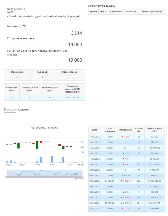 Приостановлено движение и совершение торговых операций с привилегированными акциями Алмалыкского ГМК на период с 18 по 24 февраля 2022 года включительно.