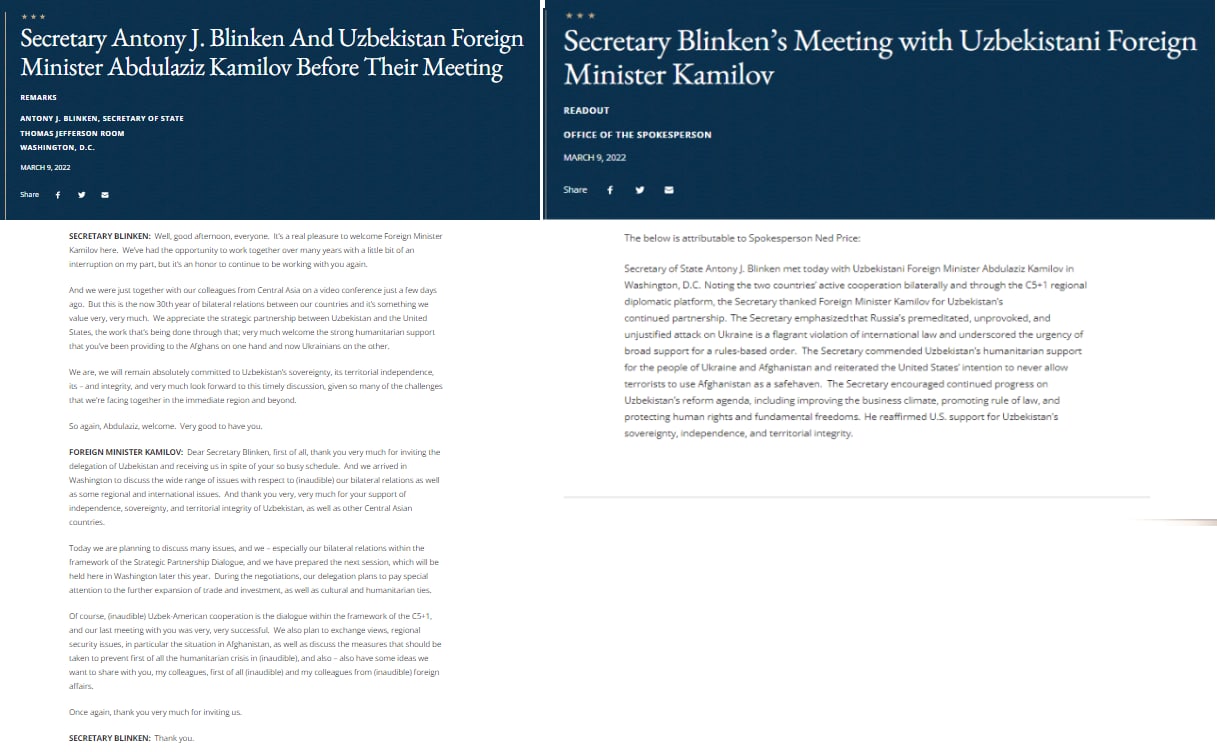 🇺🇸🇺🇿 С 6 по 9 марта делегация Узбекистана во главе c министром иностранных дел пребывала в США и провела переговоры с госсекретарём и представителями администрации США, членами Конгресса, американскими деловыми и академическими кругами.