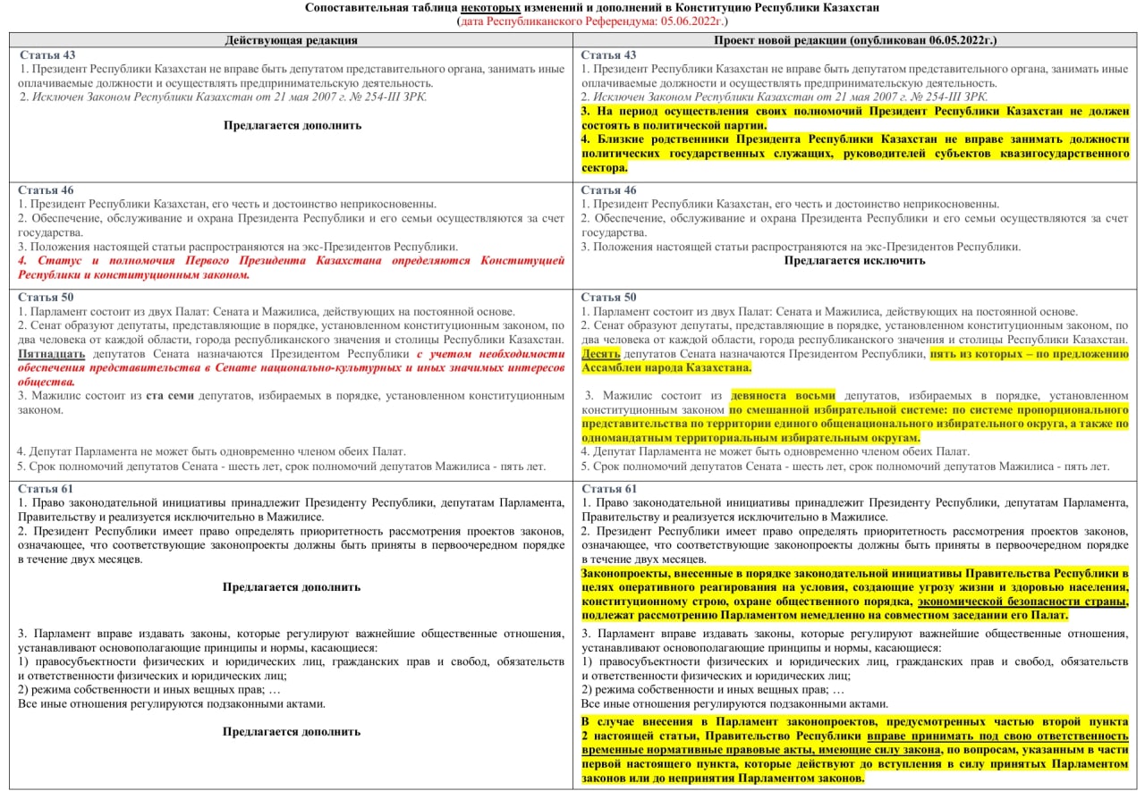📜 Опубликован текст проекта закона РК «О внесении изменений и дополнений в Конституцию Республики Казахстан» [см на фото]