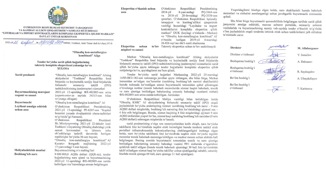 Алмалыкский ГМК объявил отбор андеррайтера на организацию публичного размещения простых акций