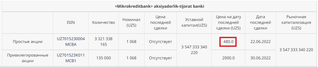 На годовом общем собрании акционеров АКБ «Микрокредитбанк», состоявшемся 27.06.2022г. (кворум – 99,50%) принято решение не выплачивать дивиденды по простым и привилегированным акциям Банка из чистой прибыли Банка за 2021 год, составившей 38,44 млрд сумов. При этом 1,92 млрд сумов из чистой прибыли направлены на пополнение резервного фонда Банка общего назначения, а 36,52 млрд сумов (95%) – оставлены нераспределёнными.