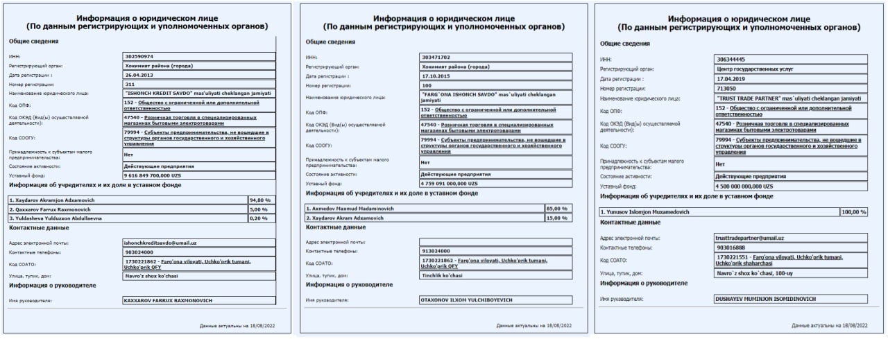 ▪️Учредитель (участник): Акромхўжаева Саъдуллахона Анвар ўғли