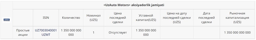 Вместе с тем, 2 декабря была зарегистрирована внебиржевая сделка на 212,9 млрд сумов с акциями АО «UzAuto Motors».