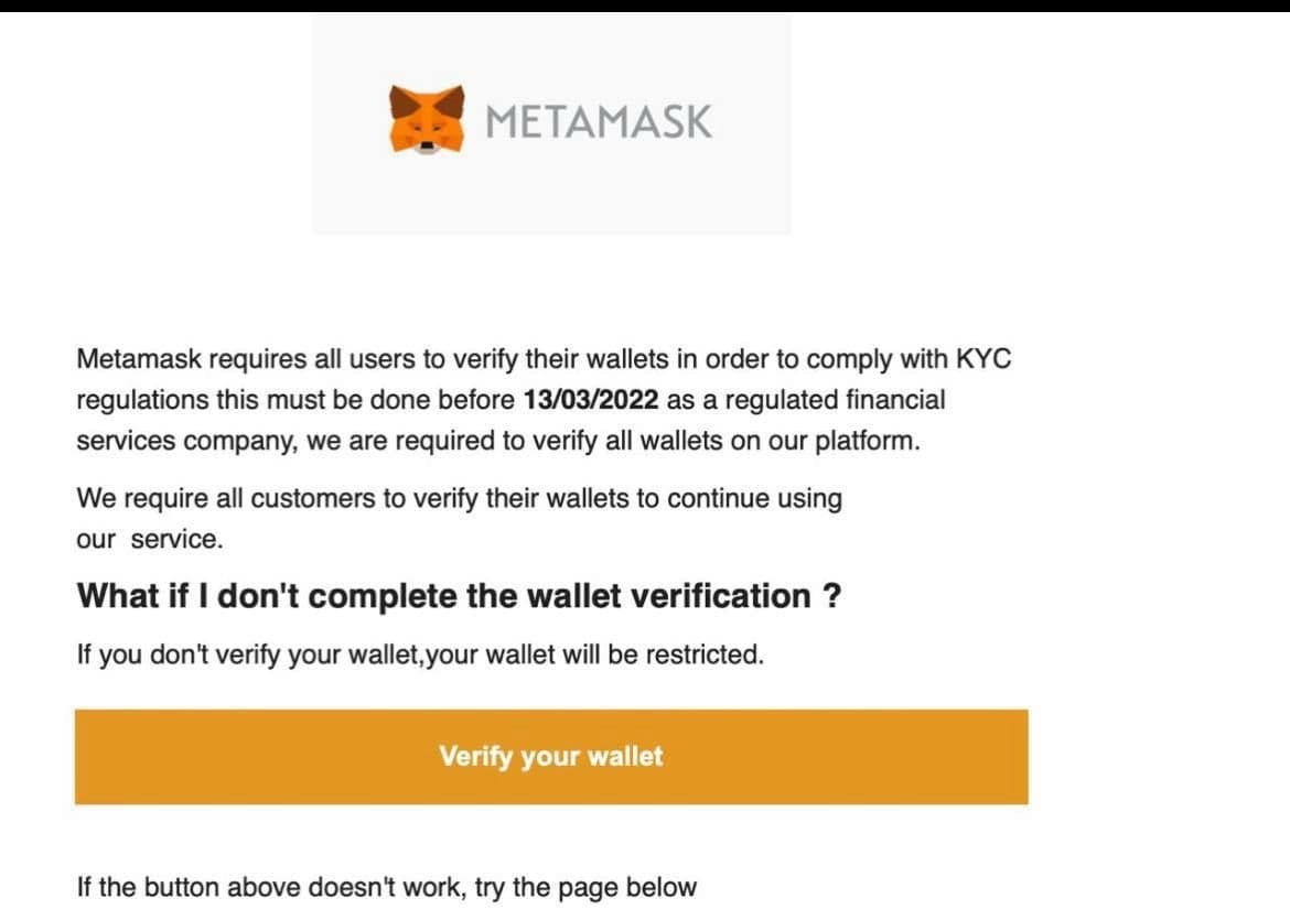 Если вам в почту приходит сообщение от децентрализованного кошелька Metamask, где просят пройти верификацию или совершить еще какие-то дейстия.