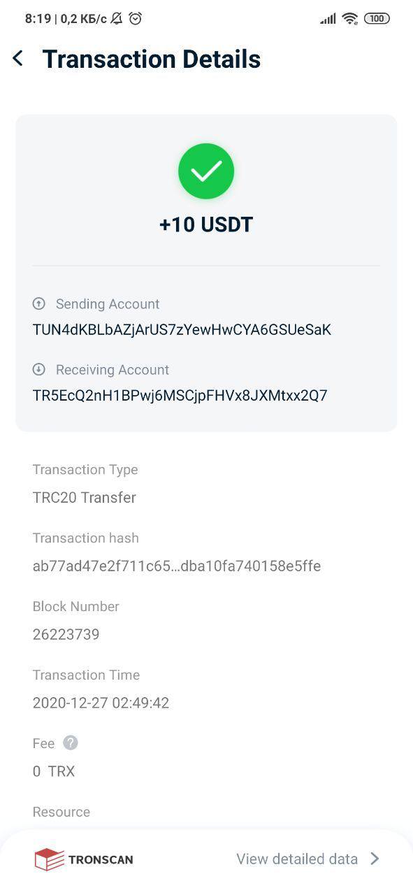 3. Вводим TRX адрес.