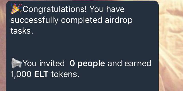 💰 Награда : 1000 ELT(10$) +50 ELT (0.5 $ ) за реферала