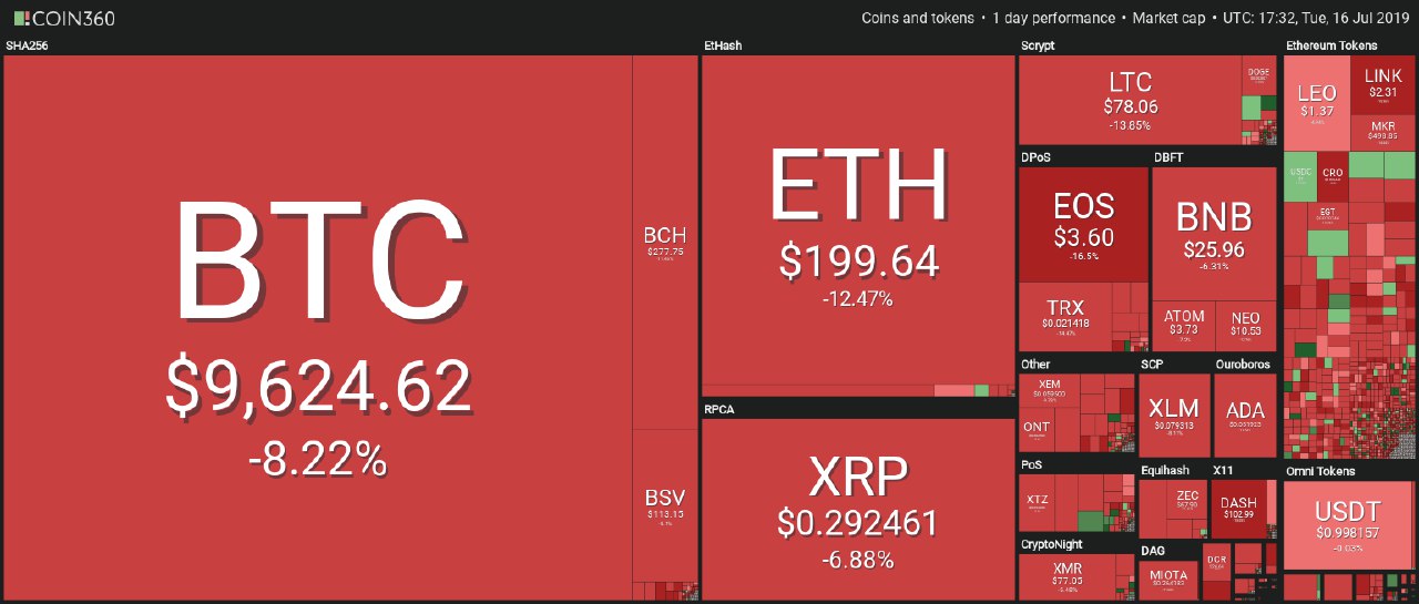 ▪️قیمت بیتکوین پس از افزایش بی سابقهی روز 26 ژوئن در چند ماه اخیر تا 13970 دلار، در روز 16 جولای سال 2019 بار دیگر به زیر 10,000 دلار کاهش یافت. این در حالیست که 20 رمز ارز صدرنشین و برتر مارکت از لحاظ ظرفیت بازار (market capacity) که در رتبههای پایینتر از پادشاه ارزهای دیجیتال یعنی بیتکوین قرار دارند متاثر از بازار شاهد از دست رفتن میزان قابل توجهی از ارزش خود میباشند.