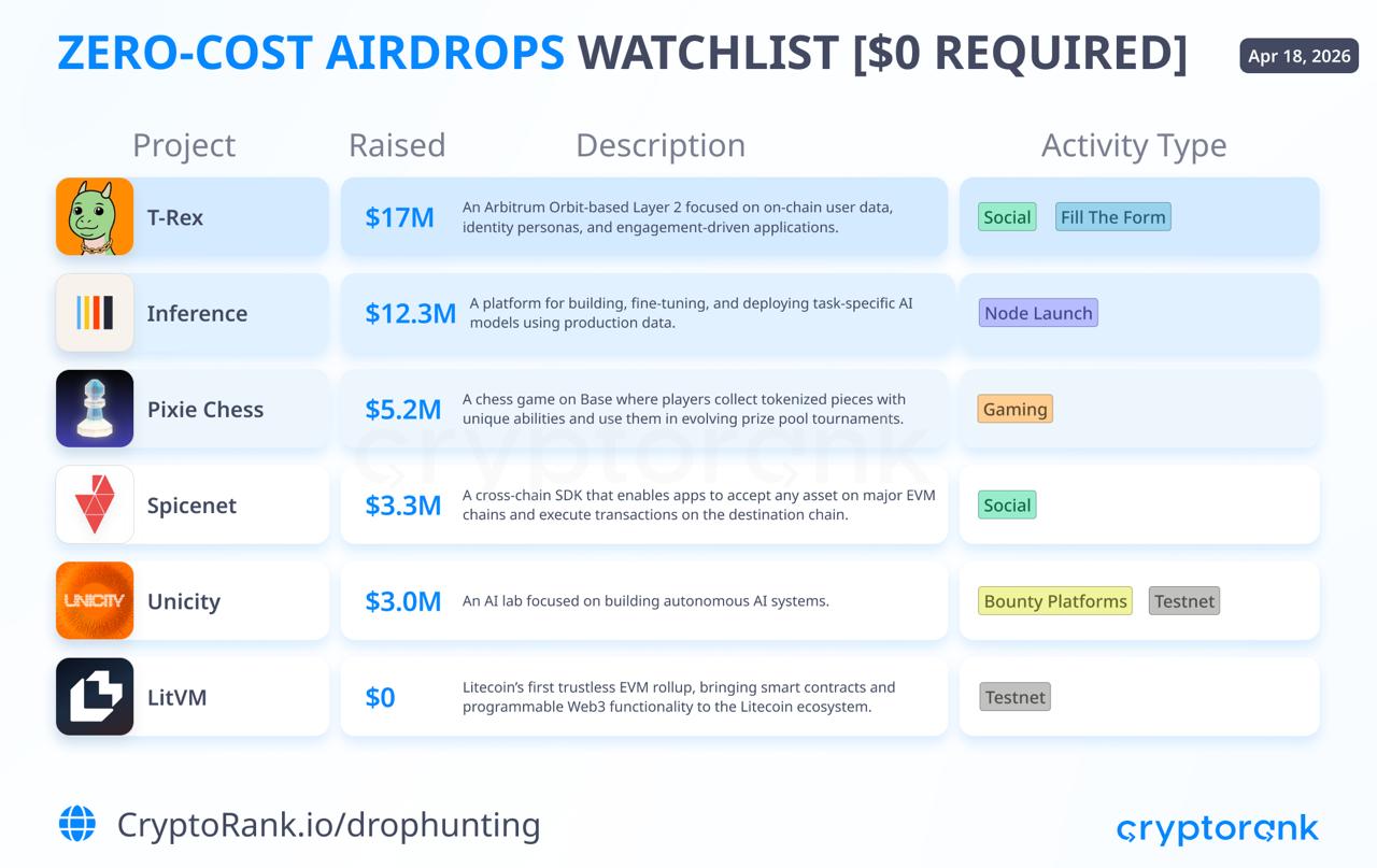 Just early-stage projects with airdrops that cost $0 to farm.