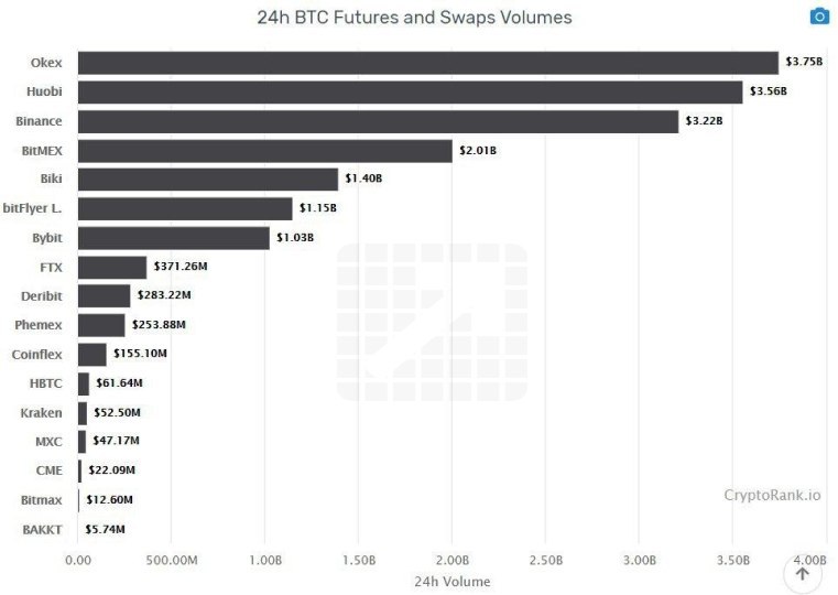 Okex took the first place in terms of trading BTC futures with a daily volume of $3.73B