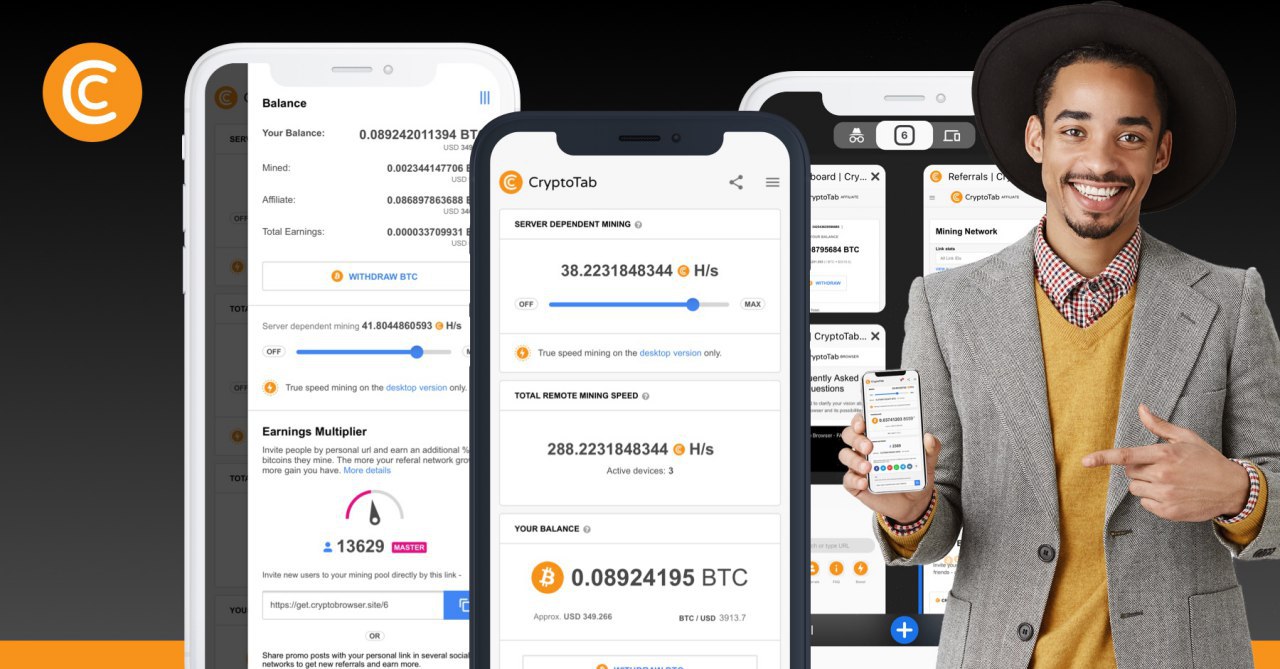 Now any of your devices are capable of bringing your income โ no matter what it is, Windows, Apple or Android. You can combine it all in a wide, branchy and complex mining network that is extremely profitable. Do it yourself, encourage your affiliates to do so โ and we, the CryptoTab Team, will do our best to provide you with even more powerful & quality software tools. ๐ช
