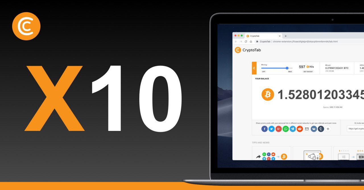 CryptoTab's boosted up badly: the new algorithm increases mining efficiency up to 10x.๐ Perhaps, it's the most important update we've ever made โ it brings you a bunch of serious advantages to be excited of: