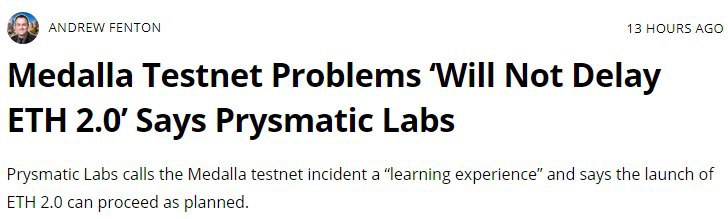 Сообщается, что проблемы с запуском тестовой сети Medalla, не задержат сроки по запуску ETH 2.0