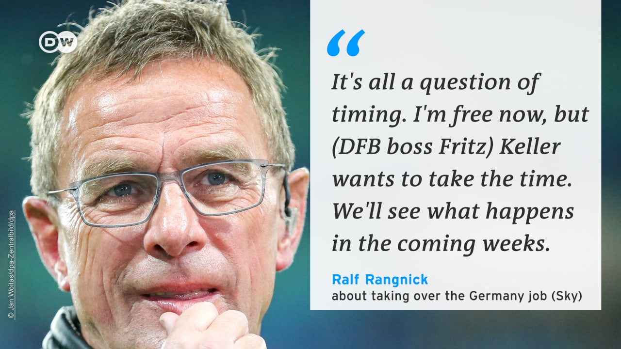 Вчера у Ральфа Рангника в студии Sky спросили, взял бы он трубку, если бы ему позвонили из DFB. "Если я еще буду свободен, то разумеется. Это также вопрос уважения. Кроме того, эта должность, которая не оставит равнодушной ни одного немецкого тренера. Я бы взял трубку и послушал, что мне скажут. В принципе я могу многое себе представить, но это вопрос тайминга. Сейчас я свободен, но Фриц Келлер (президент DFB) хочет взять время подумать. Посмотрим, что произойдет в ближайшие недели. Я мог бы себе это представить. Работа с Оливером Бирхоффом выглядела бы плодотворной. Он часто бывал в Лейпциге и видел нашу концепцию. Я думаю, это сотрудничество было бы очень плодотворным для будущего немецкого футбола", — ответил Рангник.