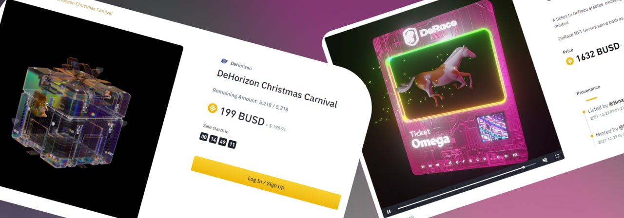 👌🏻Завтра у нас 2 интересных сейла на бинанс 💢1 - Боксы DeHorizon - 13:00 по Киеву⏰ Всего 5.218 штук Цена: 199 BUSD (1 бокс на аккаунт) 💢2 - DeRace - 12:00 по Киеву⏰ Тут у нас билеты лошадей, по не малым ценам. Тем не менее иксы скорее всего будут Цены:…