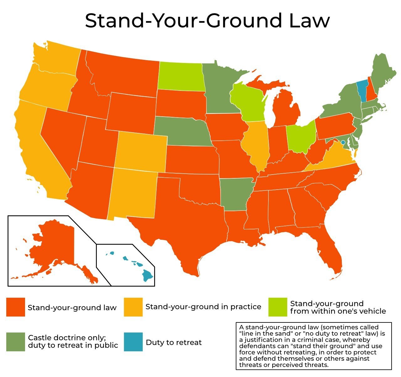 Stand-your-ground law (Право на защиту территории) — доктрина уголовного законодательства США, отрицающая необходимость отступления с законно занимаемой территории при угрозе нападения.