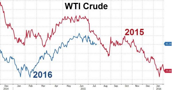 Динамика нефти в 2016 похожа на то, что мы наблюдали в 2015, отмечают в Zero Hedge: