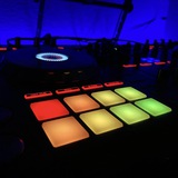 В работе использовал свой расширенный комплект (подробно писал о нём в этой статье) — система DVS (Таймкод). Сигнал с виниловых пластинок преобразуется в компьютерные данные через специальный аудиоинтерфейс, и, поступая в DJ-программу, управляет измененем скорости воспроизведения музыки, направлением и положением трека и подается в микшерный пульт, где мы слышим уже звук самого трека.