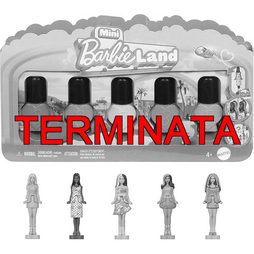 🧩 Barbie - Set con 5 Mini Bambole in Contenitori di Smalto per Unghie