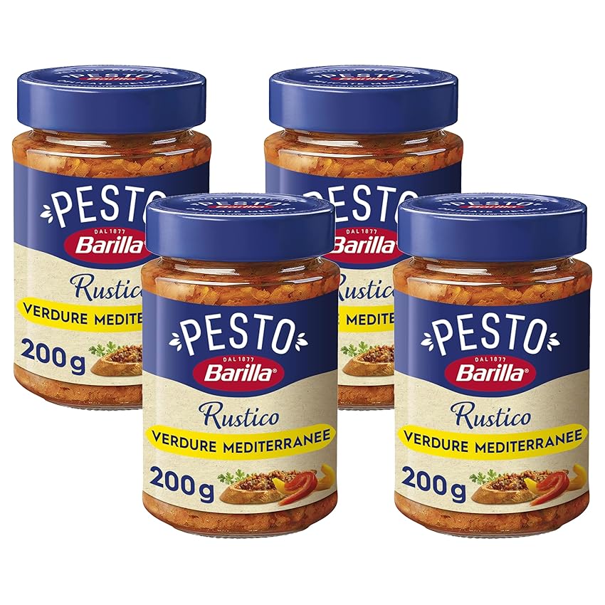 🥫 Barilla - Sugo Pesto Rustico Mediterraneo, con Zucchine, Peperoni e Pomodori - 4 Pezzi