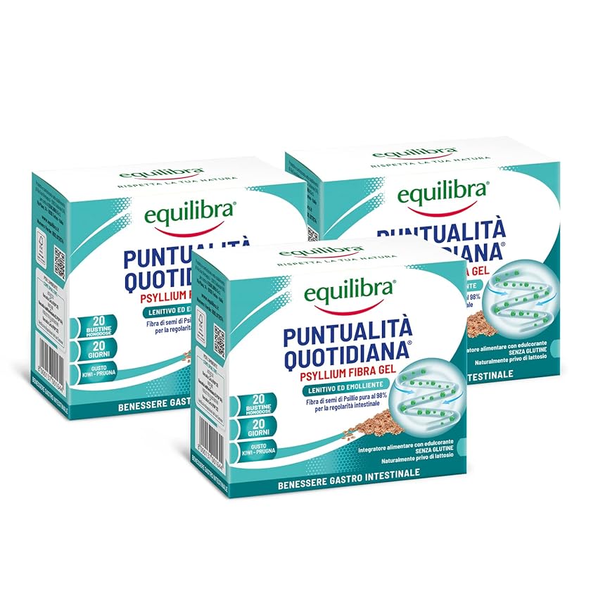 💆 Equilibra Integratori Alimentari - Integratore per la Regolarità del Transito Intestinale e l'Assorbimento dei Nutrienti - 60 Bustine (3 Pezzi da 20 Bustine)
