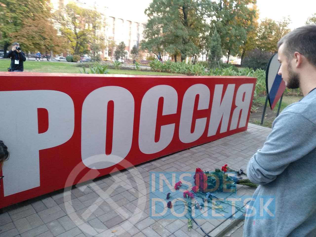 🥀🥀Дончане несут цветы к артобъекту Россия в первомайском сквере на площади Ленина🕯