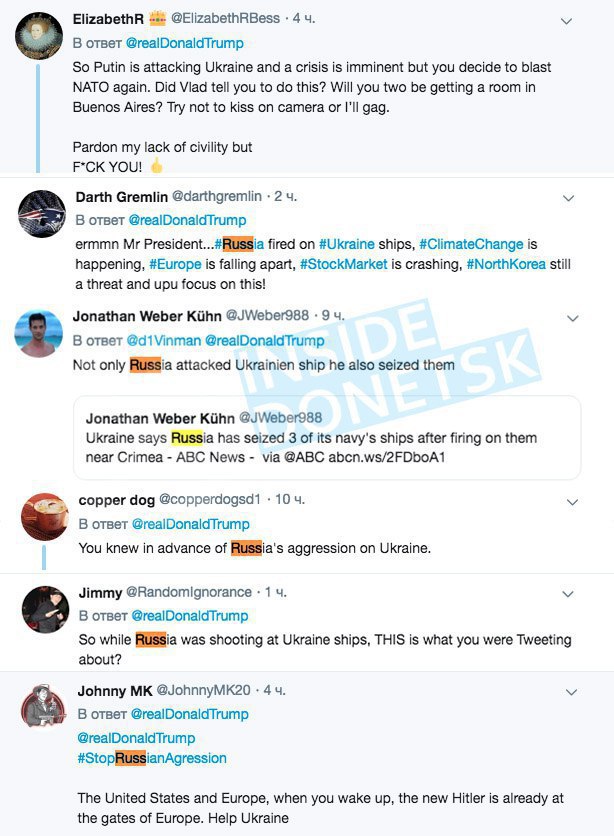 Трамп наверное и не проснулся еще, а в интернетах его уже заждалась диванная армия украинцев, которые плачут и жалуются на агрессивные пиздюли от ФСБ РФ.