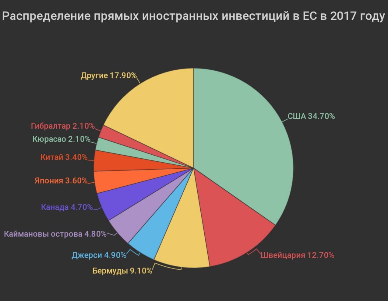 Основной поток ПИИ шёл через популярные офшорные центры: Бермуды, Джерси, Каймановы острова, Гибралтар, Кюрасао и тд