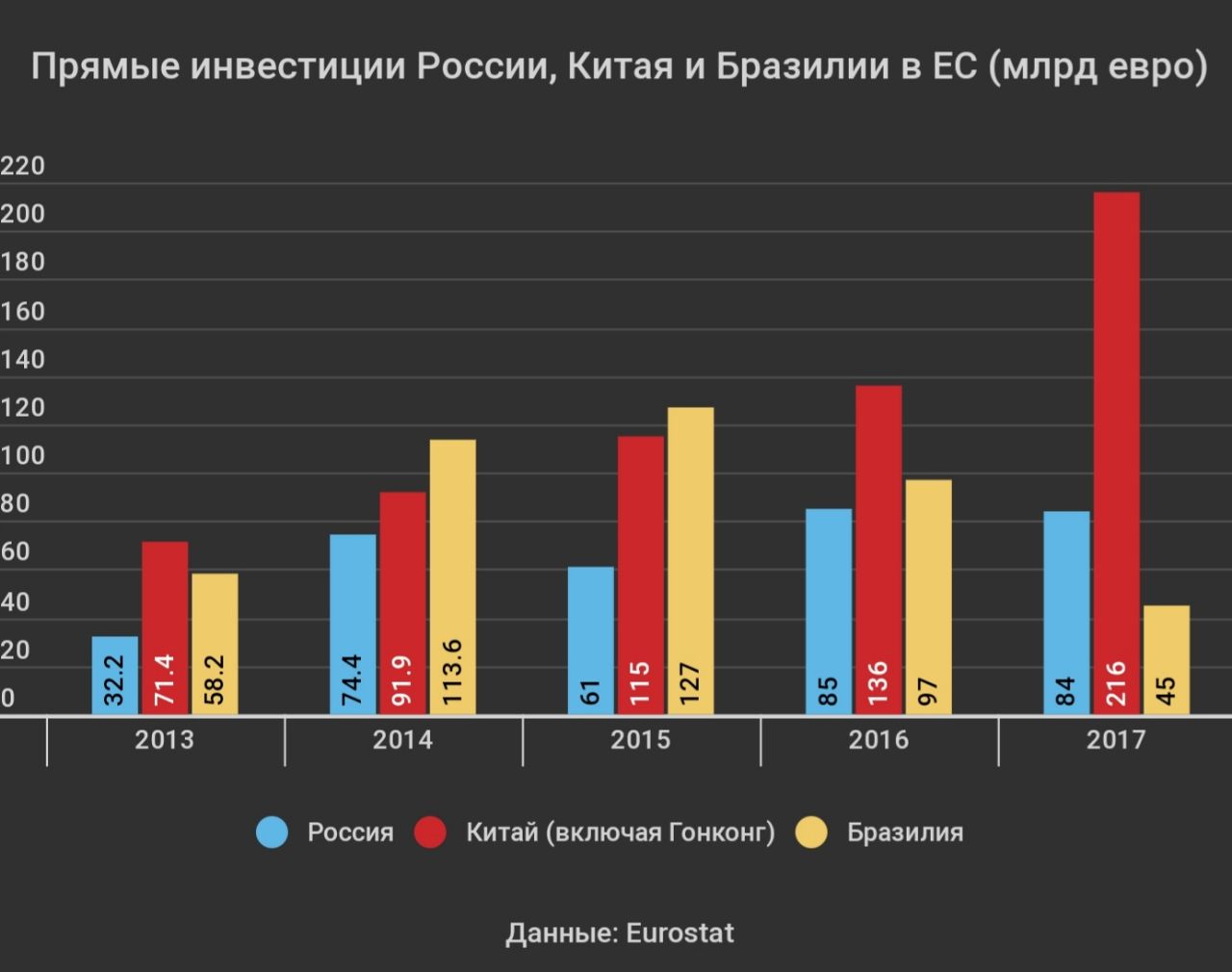 Особо подчеркивается, что инвестиции из Китая увеличились в шесть раз, из Бразилии - в 10 раз, а из России - более чем удвоились