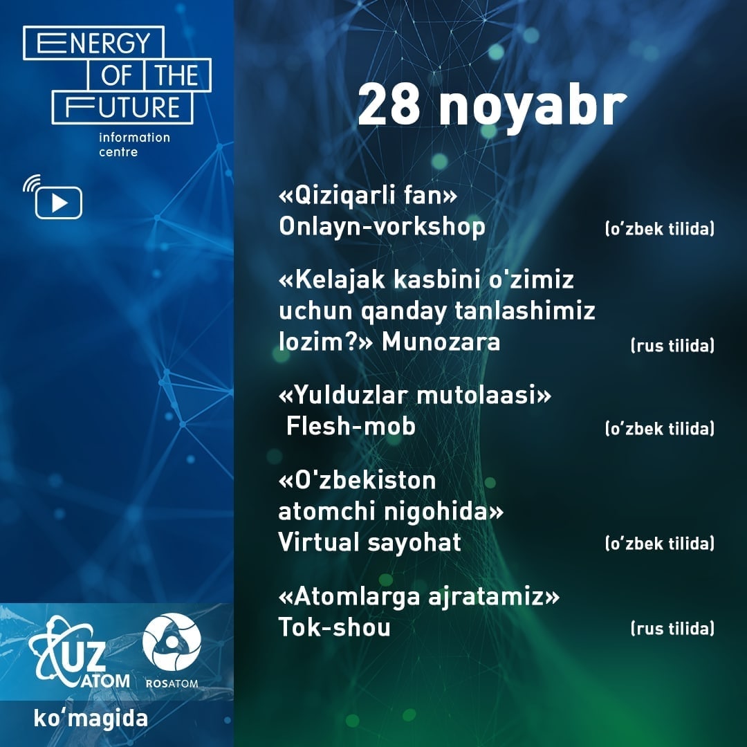 Siz bilan o'zining ilm-fan, innovatsiyalar va yadro texnologiyalari sohasidagi olimlar va ilm-fanni ommalashtiruvchilar o`z bilimlari bilan o'rtoqlashadilar. Va faqatgina ular emas.