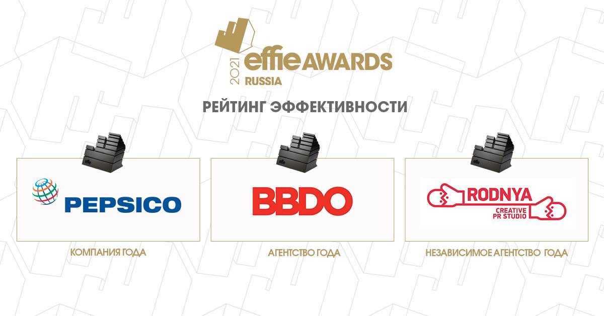 🏆Рейтинг является частью глобального индекса эффективности Effie Index и включает все агентства и компании, занявшие призовые места и вошедшие в шорт-лист премии Effie Awards Russia 2021.