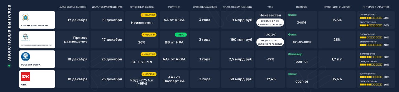 🪙 Коммерческие облигации. Условия для инвесторов: