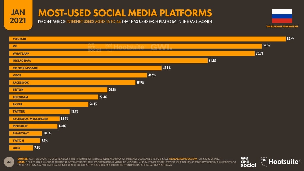 Сегодня - выжимка данных по России из отчета datareportal 2021: