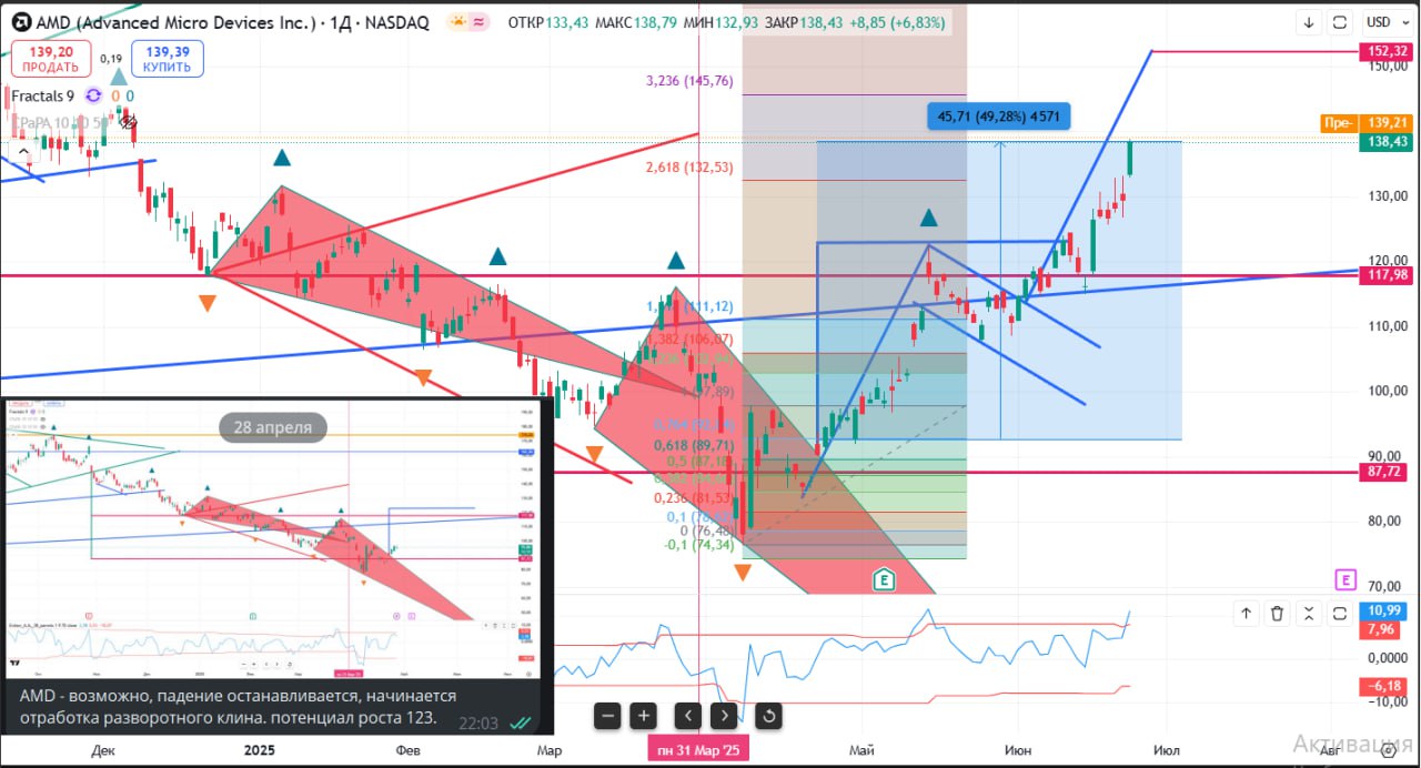 В конце апреля на собрании клуба разбирали разворотный клин на графике AMD.