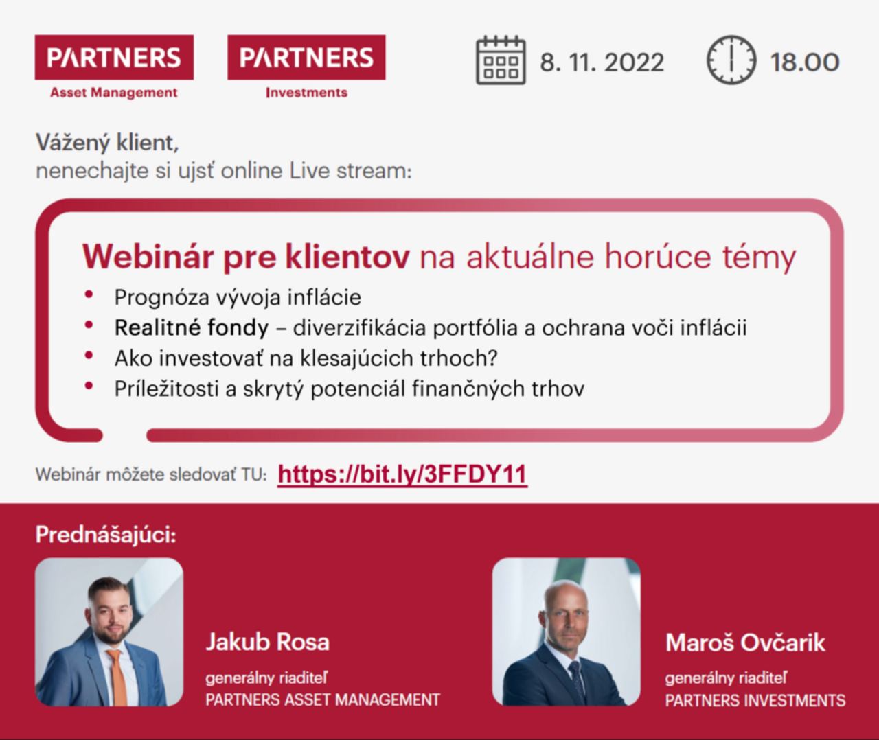 Prihovorí sa vám generálny riaditeľ Partners Asset Management Jakub Rosa a generálny riaditeľ Partners Investments Maroš Ovčarik.