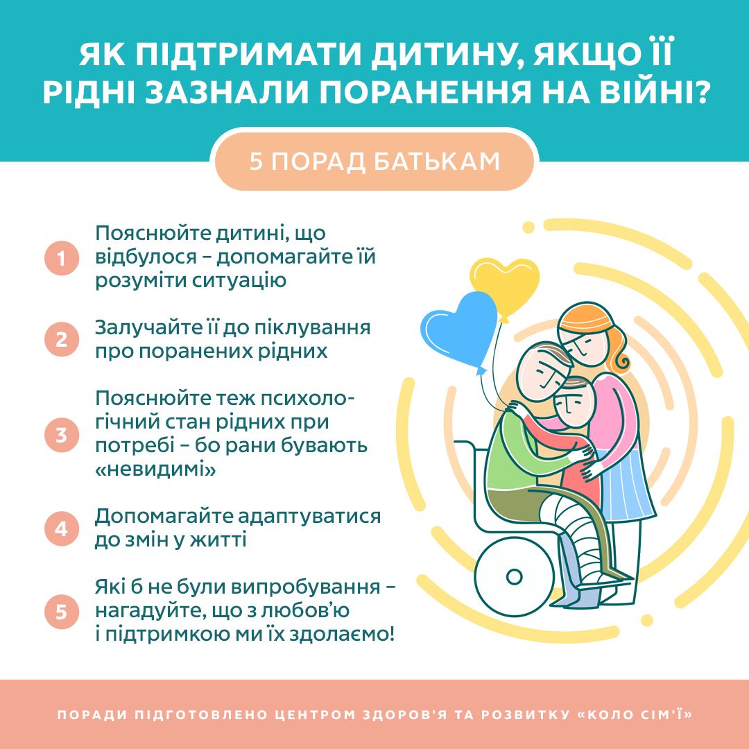 👨👩👧 Як говорити з дитиною, якщо хтось із найрідніших отримав поранення? Важливо, щоб вона не лишалася зі своїми думками й тривогами наодинці. Тому фахівці Центру здоров'я та розвитку «Коло сім'ї» зібрали необхідні поради: