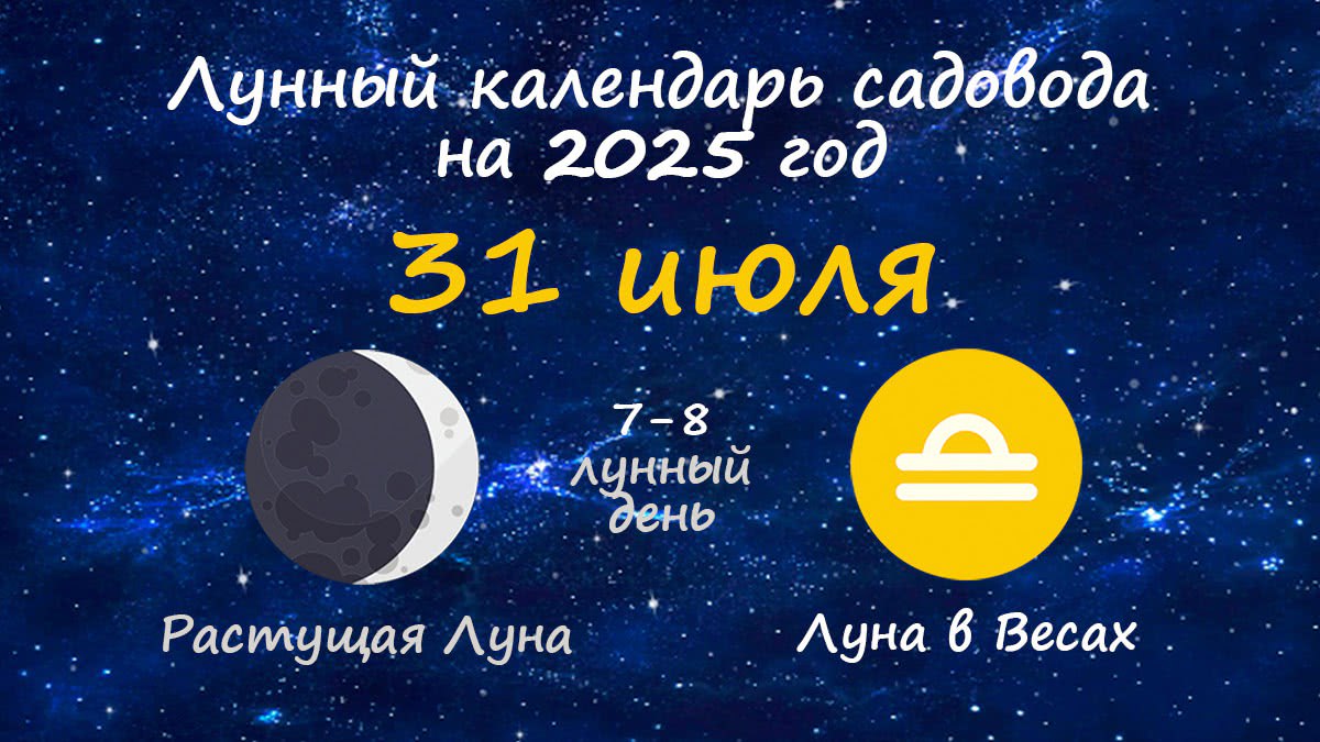 Лунный посевной календарь садовода на 31 июля, четверг, 7-8-й лунный день. 🌒 Растущая Луна находится в Весах ♎️
