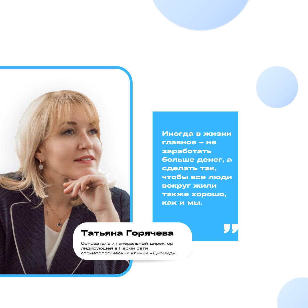 🔹Татьяна Горячева - собственник и директор Франчайзинговой сети стоматологических клиник «Диомид» (г.Пермь).
