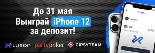 Осталось всего 4 дня, чтобы принять участие в розыгрыше от GipsyTeam и partypoker и побороться за iPhone12, AirPods Pro и AirPods! Чтобы получить лотерейные билеты, достаточно до 31 мая сделать депозит на partypoker через Luxon: