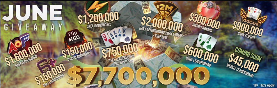 Лидерборды в июне почти не отличаются от майских. В ежедневном розыгрыше в AoF и Spin & Gold разыграют по $50,000, в Rush & Cash - $40,000, в PLO и PLO-5 - $25,000, в холдеме - $20,000, во Flip & Go и шортдеке - по $5,000.