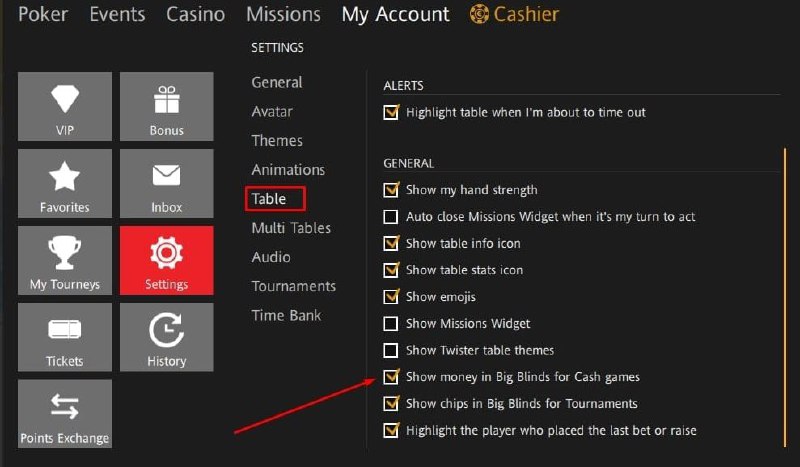 2️⃣ Отключите в ней перевод стеков в большие блайнды.