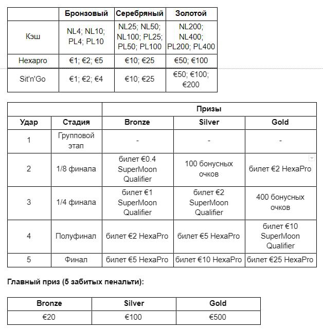 Еще 250,000 гривен разделят 40 самых активных нокаутеров серии: за каждого выбитого оппонента начисляются очки в лидерборд. Чем больше бай-ин, тем больше очков: одно для турниров до 350 гривен, два - до 500 грн, три - от 501 грн. Победитель получит 50,000 гривен, участие нужно подтвердить в клиенте: Акции -> Euro PONT Турниромания.
