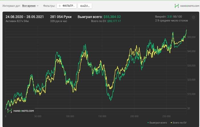👷♂️ А самым жестким гриндером в мае стал очень трудолюбивый покерист с ником x15k — на NL25 ему раздали карты 94,679 раз (и это не ZOOM!). Марафон пополнил банкролл героя на $1,746.