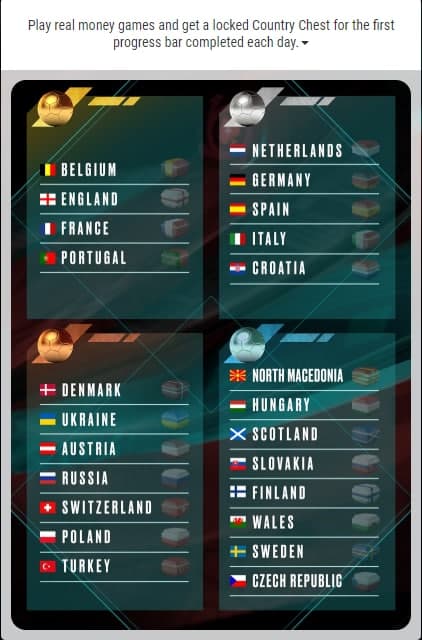 Если сборная не вышла из группы или проиграла в ⅛ финала, сундук заменяется билетом на один из двух розыгрышей:
