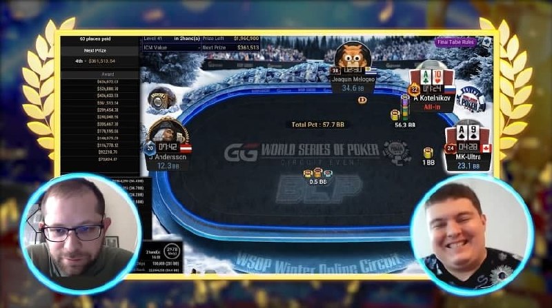 Неделю назад мы выпустили второй эпизод нового шоу на ютуб-канале GipsyTeam, «Разбор турнира»! Если у вас есть свободные 40 минут, очень советуем посмотреть: там Андрей Котельников и Илья Городецкий разбирают раздачи финального стола турнира WSOP-C на GGпокерок, где Андрей в декабре выиграл более $527,000. Финалку он начал с коротким стеком (всего 9 бб!), и на пути к хедз-апу пережил немало приключений. Кульминацией стала эпичная раздача, которую ведущие окрестили «раздачей, которая не могла произойти ни в одной вселенной» 👽