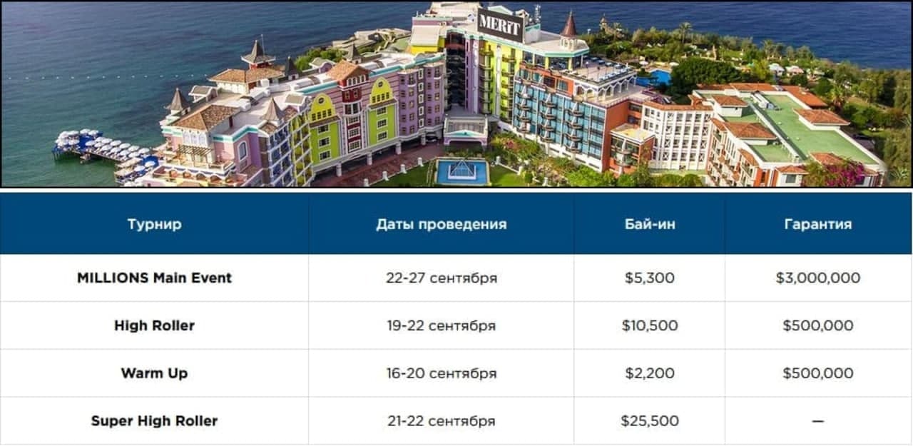 16-27 сентября в отеле Merit пройдет первый за полтора года этап серии MILLIONS. Partypoker посетит Северный Кипр впервые, но место отлично известно всем любителям офлайна. Рассказываем о серии и о том, как она будет проходить в условиях пандемии.