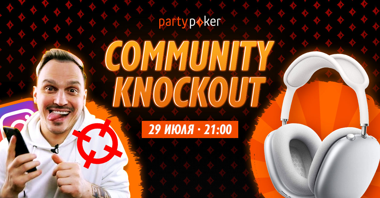 29 июля в 21:00 по Москве на partypoker пройдет Community Poker Knockout, турнир за $5.5 с гарантией $20,000. Помимо солидных призовых, в турнире будут участвовать приглашенные звезды с очень щедрыми призами за нокауты 🔥